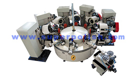 Especially designed for polishing outer face of cookware. The machine is able to adjust the angle of polishing according to The shape and size of the cookware Vacuum plate instrument cups on the machine allows easy loading & unloading of working pieces. Automatic supply function is available when the cloth wheel wear out. Auto spray liquid equipment makes the operation easier. Each post is equipped with two polishing wheels for increasing efficiency.