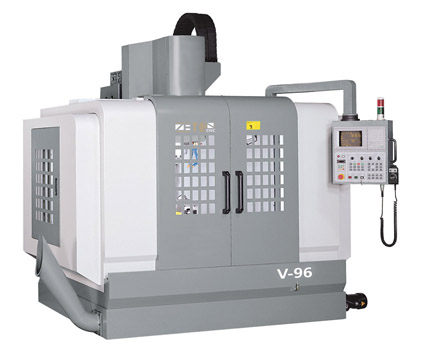V-96 Work Table Size 1000 x 550 (mm ) Table Travel (X.Y.Z Axis) 900 / 600 / 600 (mm ) T-Slot Size ( Size x No. x Pitch ) 18 x 5 x 100 (mm ) Spindle Nose to Table Top 150 ~ 750 (mm ) Spindle Center to Column Surface 625 (mm ) Table Load Capacity 800 (kg ) Spindle Taper BT-40 Spindle Speed 8000 (rpm ) Spindle Diameter o88 (mm ) Spindle Motor 7.5 (kw ) Servo Motor (X.Y.Z Axis) 2.0 / 2.0 / 2.0 (kw ) X.Y.Z Axis Rapid Feed 16 (m/min ) Tool Change Armless ( type) Number of Tools 20 Max.Tool Diameter o100 / ( 180 ) (mm) Max.Tool Length 250 (mm) Max.Tool Weight 7 (kg) Repeatability,Positioning Accuracy กำ0.005 / 300 (mm) Ball Bar Precision กำ0.005 (mm) Spindle Oil Coolant Pump 0.2 (kw) Automatic Lubrication 0.075 (kw) Coolant Pump 0.75 (kw) Fluid Tank Capacity 320 (L) Air Source 6 (kg/cm2) Power Requirement 18 ( KVA ) Machine Net Weight 6850 (kg) Machine Dimensions(LxWxH) 238 x 247 x 265 (cm)