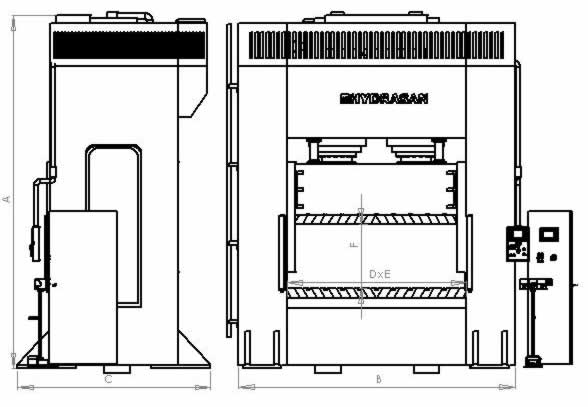 It is designed according to your production purposes and your tools. It is manufactured standard with the pressure capacity from 150 to 1000 Metric tons. It is constructed as a closed frame press, the main cylinders are located in the upper part. The pressing table is located in the lower part. The upper tools are mounted on the slider table and the lower tools are mounted on the pressing table. With a sophisticated control system it is possible to precisely control the pressing force and position during operation. It is possible to work position or pressure dependent. Used for: Drawing,