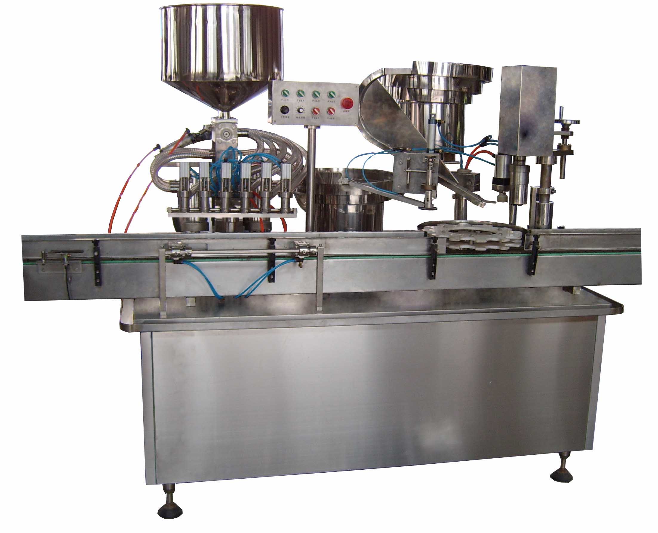 This liquor filling and sealing equipment is specinally developed and designed for the bird's nest bottle and other wide mouthed bottle,which can automatically complete the operation of bottling,filling,lidding,lid-revolving(or lid-pressing)etc.The operation of filling is carried out by revolving valve structure,which is especially applicable in the filling of ointment and the liquor with granule.This machine is compact in structure with its structure with its high reliability and adaptability. Capacity: 40-50 bottle/min Applied bottle: 50-300 ml bird's bottle and other ointment bottle |