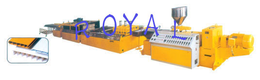 PVC wood plastic wide door board extrusion line/PVC windowsill plate extrusion line This line is used to produce wood plastic foamed wide door plate and windowsill plate, and the final products of this line collect the advantages of plastic and wood, which has not only the appearance of natural wood, moreover they overcome the shortages of natural products. The final products of this line are featured by antisepsis, damp proof, anti-worm, high stability and anti-cracking, etc.